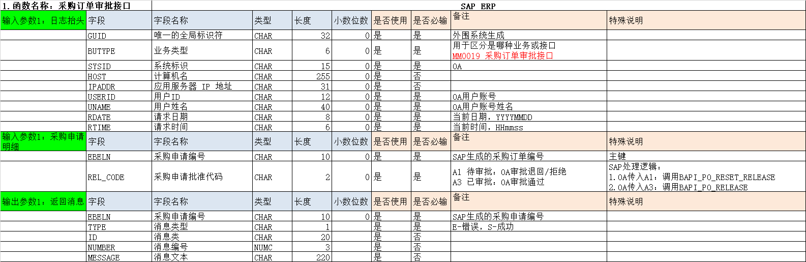 使用与SAP中通过MRP跑出的PR转成的采购订单推送OA进行审批,将审批结果通过接口传入SAP的业务场景。