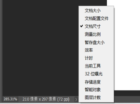 这一栏是状态栏,包括文档大小、文档配置文件、文档尺寸、测量比例、暂存盘大小、效率、计时、当前工具、32位曝光、存储进度、职能对象、图层计数,查找相关内容可以当状态栏进行查找。