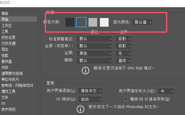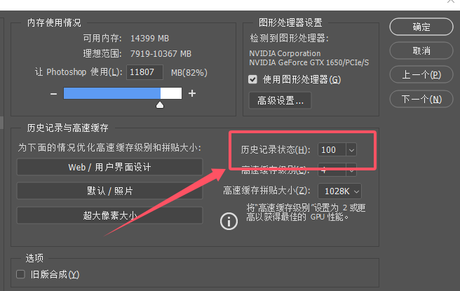 同时勾选使用图形处理器,勾选这个选项能提升操作响应速度,减少卡顿。如下所示: