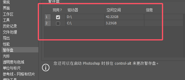 点击暂存盘,因为C盘是系统盘,这里不推荐暂存盘存在C盘中: