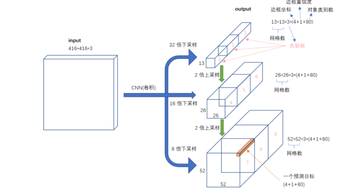 分配上,最小的 13×13 特征图(最大感受野)应用较大的先验框,适合检测大对象;中等的 26×26 特征图(中等感受野)应用中等先验框,检测中等大小对象;较大的 52×52 特征图(较小感受野)应用较小先验框,检测小对象。丰富且适配的先验框,让 YOLOv3 在检测不同大小物体时,有了更贴合的候选框,尤其提升了小目标检测的准确性。