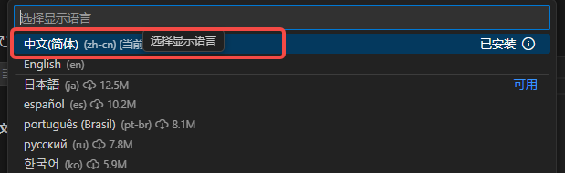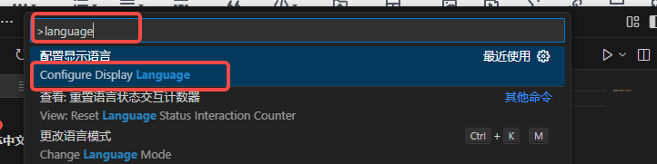 ctrl + shift + p 调出如下窗口,输入如下,切换成中文