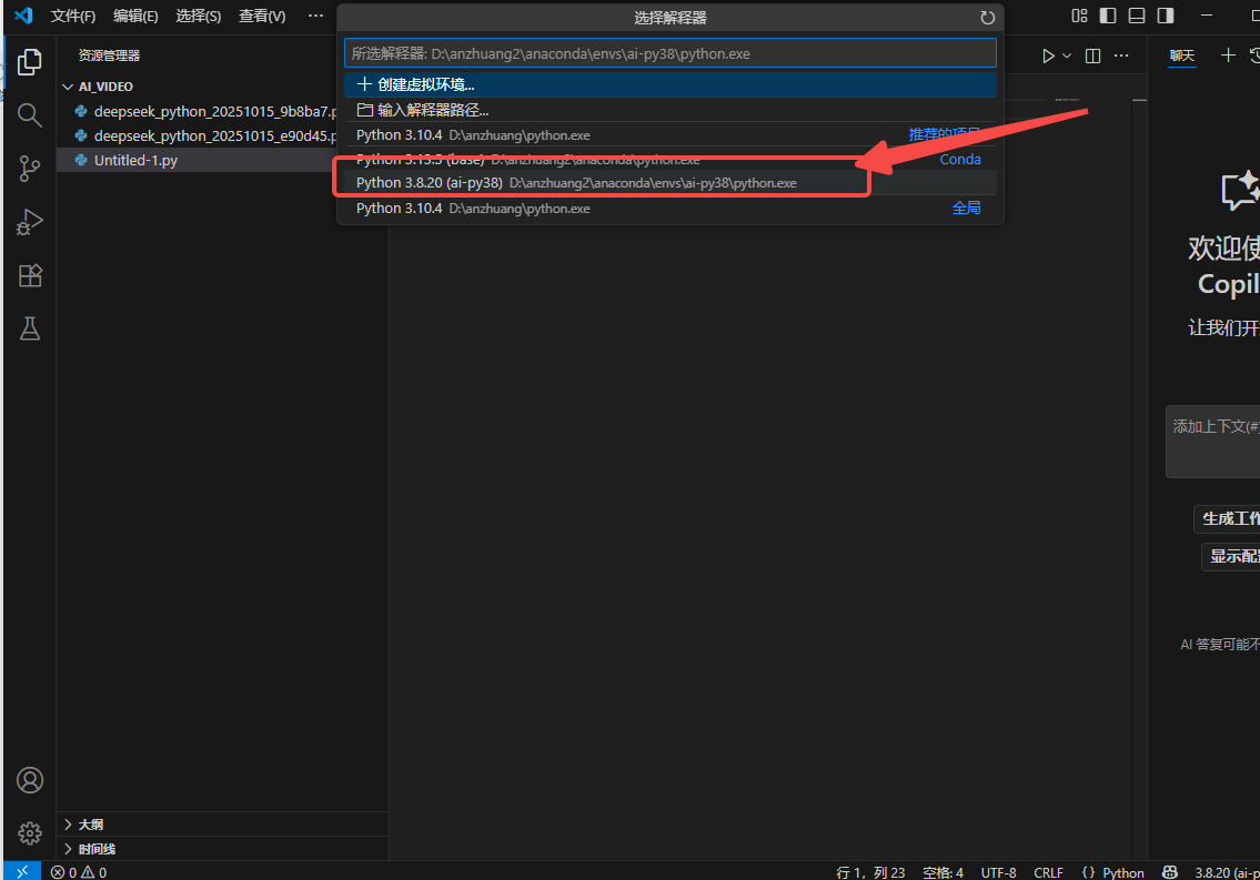 conda 虚拟环境创建好后,在vscode 配置python 解释器