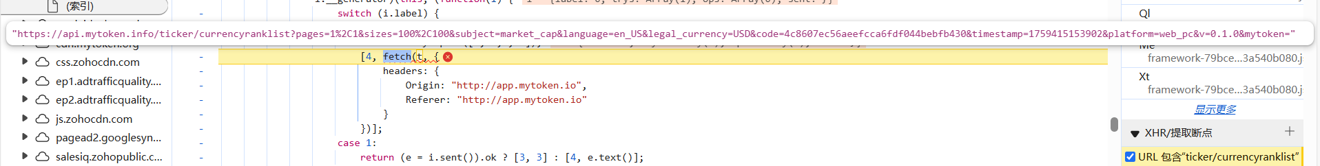 既然这个不太好找我们可以想一想有没有什么可以hook的,我想过hook赋值或者hook-md5加密(因为我看过加密长度是32位,可能是md5加密),但是貌似都不行,hook应该先想函数名,知道函数名才能重写函数来hook(个人总结),所以放弃吧,直接上绝招——xhr吧: