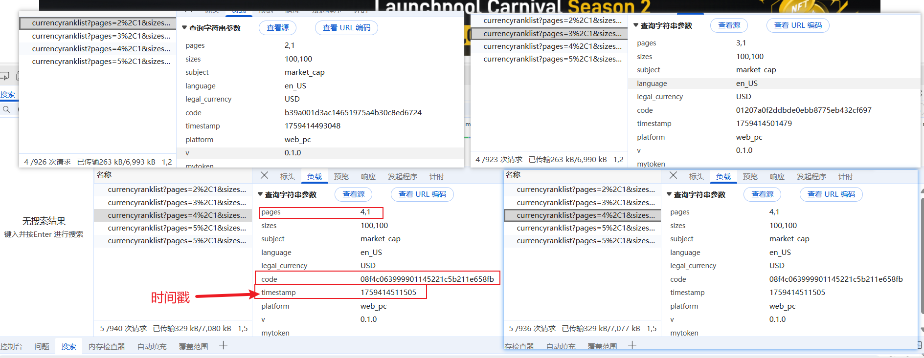 你会发现只有code,timestamp 以及页数变化,除了code是密文,其他都可以自己实现,