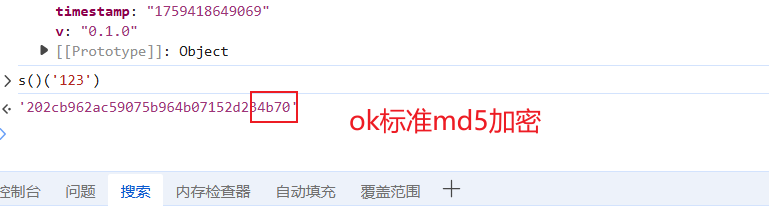 然后验证我们猜测的md5加密猜想,用他的函数加密字符串123: