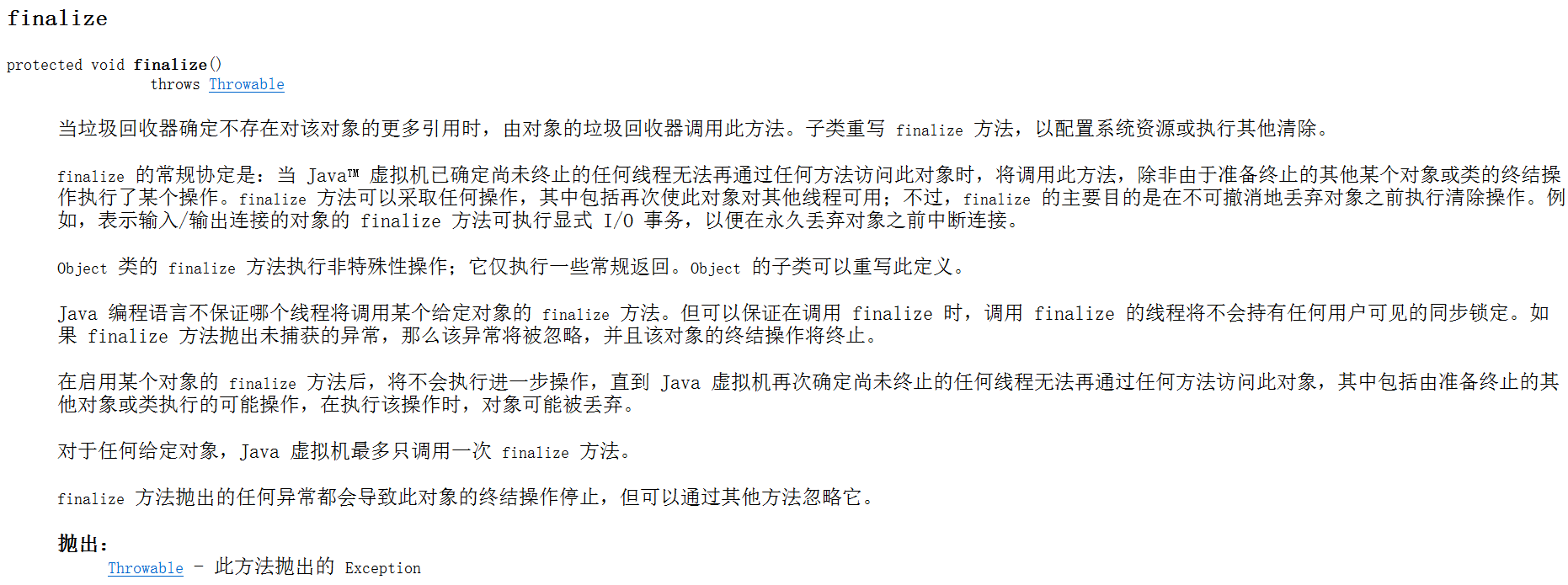 当垃圾回收器确定不存在对该对象的更多引用时,由对象的垃圾回收器调用此方法