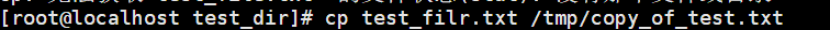 (2). 将test_file.txt文件复制到/tmp目录下,并将复制后的文件重命名为copy_of_test.txt。
