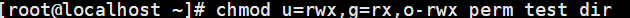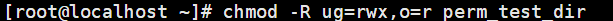 (3).递归地将perm_test_dir目录的权限修改为:所有者和所属组有读写执行权限,其他用户只有读权限。