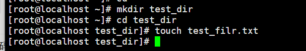 (1). 在用户主目录下创建一个名为test_dir的目录,并在该目录中创建一个名为test_file.txt的空文本文件。