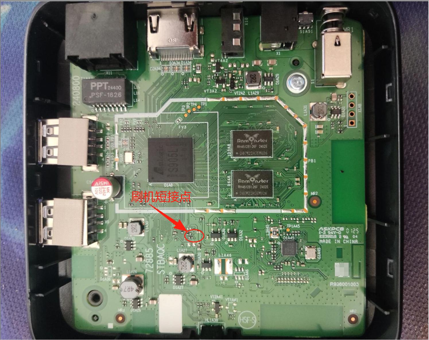 2、电脑上安装好刷机工具Amlogic USB Burning Tool 软件 →打开软件 →文件 →导入烧录包 →点击【开始】 →盒子接电源线 →电源关闭 →把USB线一端插上盒子 →保持短接 →USB另一端插上电脑 →通电开机。 等待提示成功字样后,关闭电源,拔掉刷机线,把机顶盒接上电视机,通电开机,首次开机稍微会有点慢,耐心等待初始化完成即可。