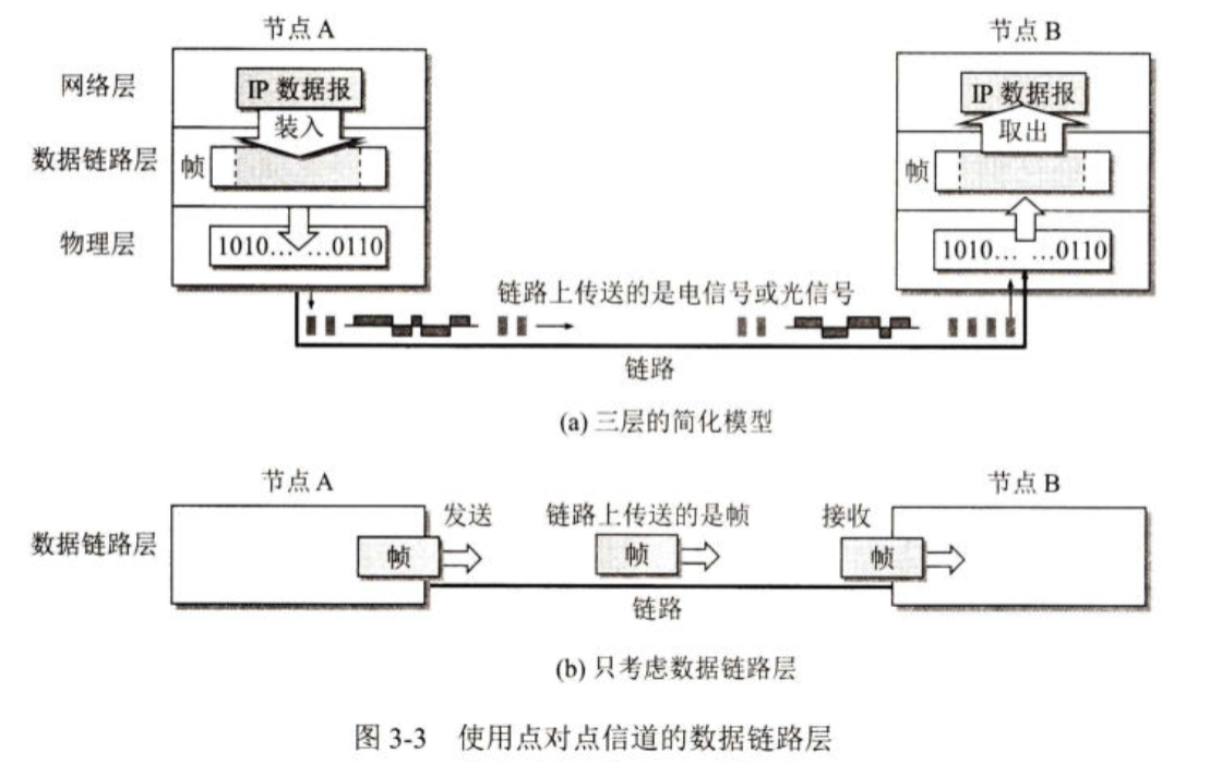 为了便于说明点对点信道的数据链路层通信,可以采用如图 3-3(a) 所示的三层模型:
