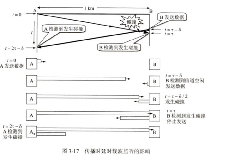因此系统必须能在往返传播时延(2τ)内检测到碰撞。