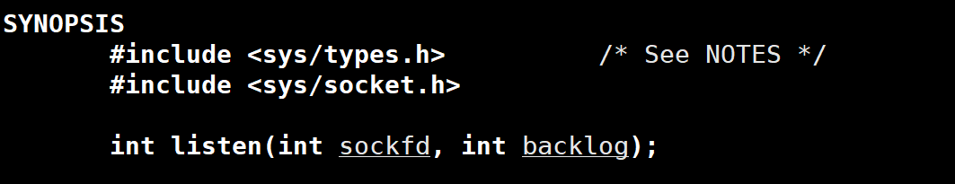 backlog:指定内核为该套接字排队的最大连接数。详细来说就是全连接队列的长度会受到 listen 第二个参数的影响。全连接队列满了的时候,就无法继续让当前连接的状态进入 established 状态了。这个队列的长度是 listen 的第二个参数 + 1,说白了就是假设你想链接5个,那你就传6