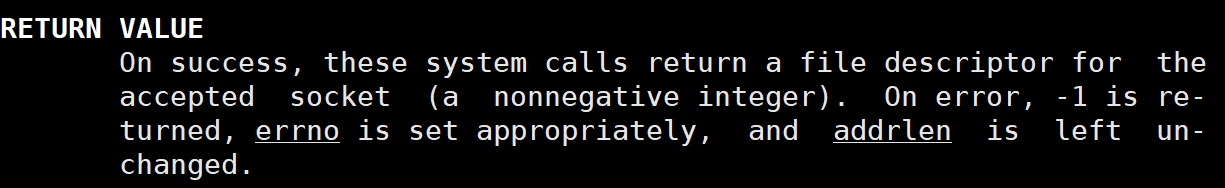 函数接受连接,并返回一个新的套接字描述符,用于与该客户端进行通信。
