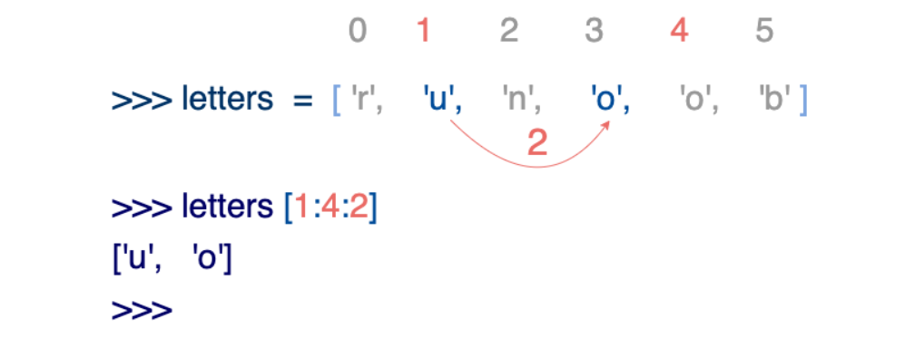 print(str[1:5:2]) # 输出从第二个开始到第五个且每隔一个的字符(步长为2)