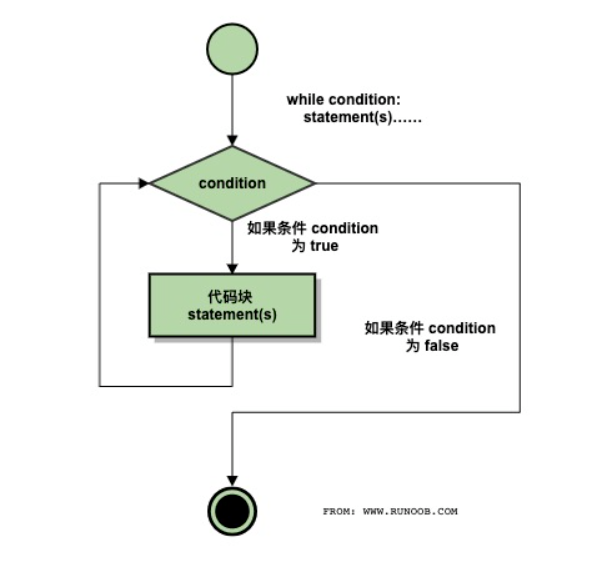类似 if 语句的语法,如果你的 while 循环体中只有一条语句,你可以将该语句与 while 写在同一行中, 如下所示: