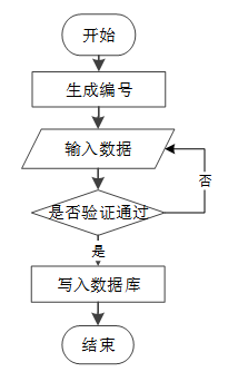 用户成功登入系统后就能够实现增加数据的操作,增加数据的编号由系统生成,用户不能随意填写,除了编号以外,其他增加信息用户自己填写,填写后的信息需经过系统验证,验证通过后即可完成数据新增,数据新增的流程图如下图3-1所示。