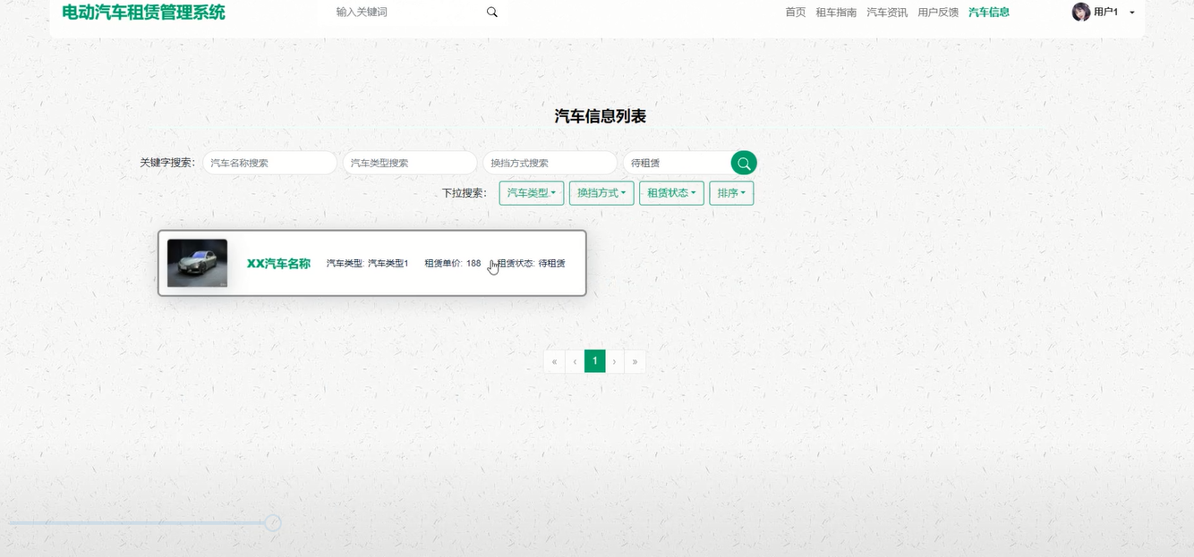 车辆信息详细展示可租赁车辆的各项信息,包括车型、品牌、价格、租赁条件、车辆图片、配置参数等,方便用户根据自己的需求和预算选择合适的车辆。其界面如下图所示。
