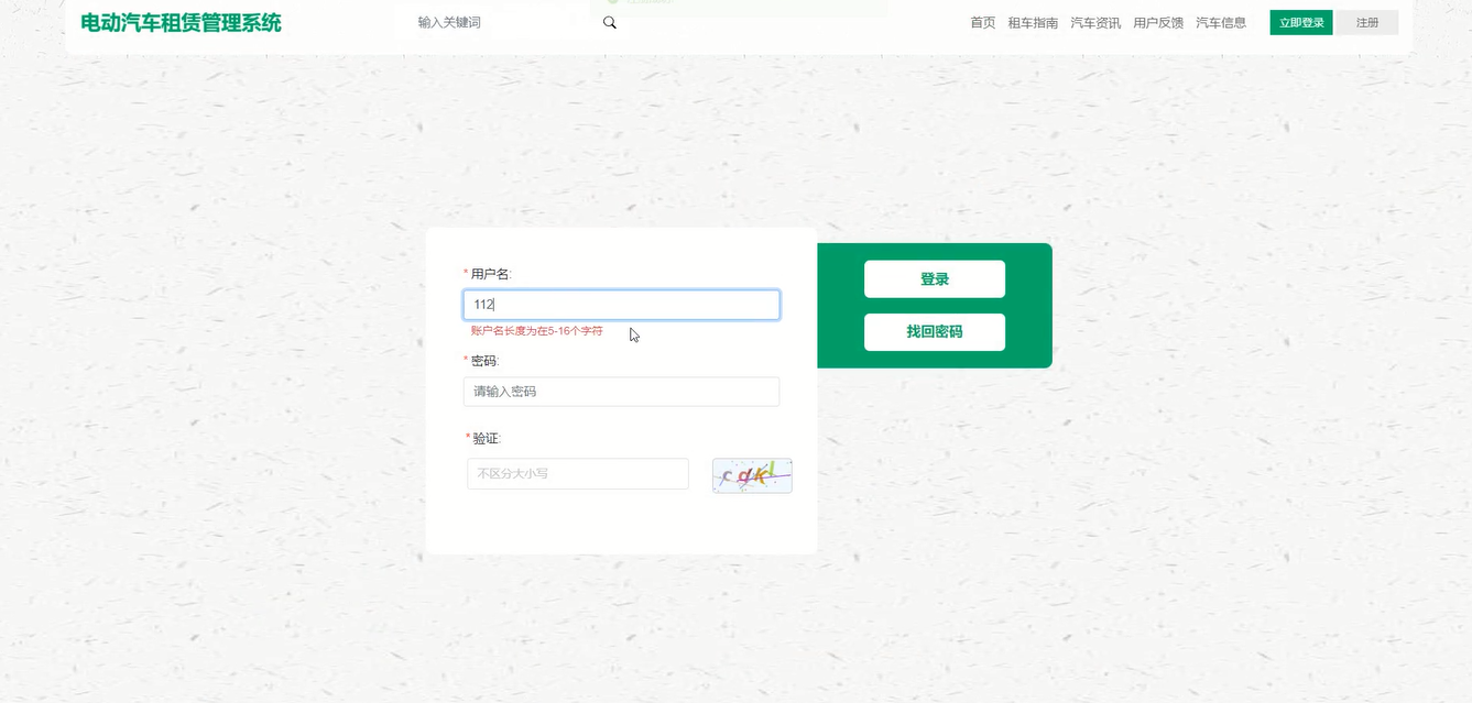 通过编写电动汽车租赁管理系统的测试用例,已经检测完毕用户登录功能测试、汽车资讯查看功能、轮播图信息添加功能、租赁订单功能、密码修改功能测试,通过这五大模块的测试为电动汽车租赁管理系统的后期推广运营提供了强力的技术支撑。