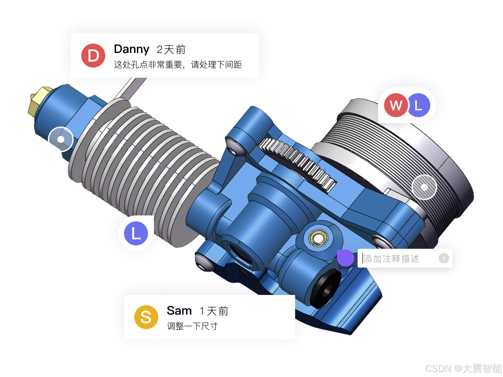 多人可在同一模型上添加标记、文字批注,意见即时同步,沟通效率成倍提升。