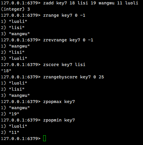 - 还有一些常用命令大体上几个数据结构用法都差不多,就不一一列举了