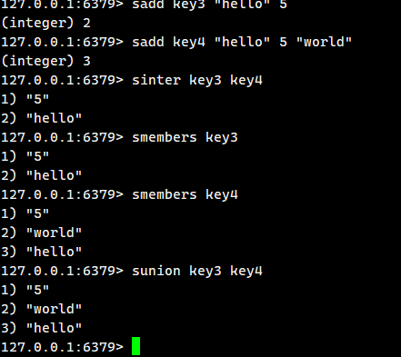 - sunionstore:将多个集合并集放到另一个集合中