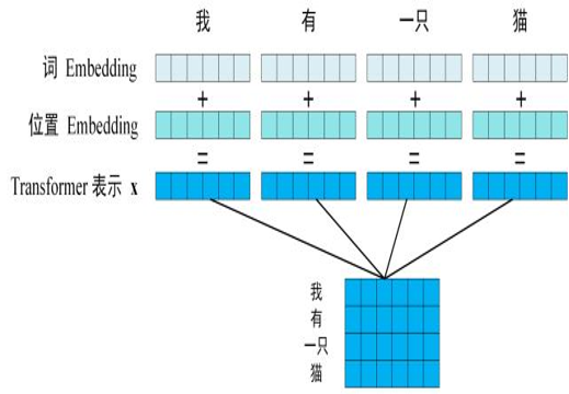 1)如下所示,句子先通过分词得到5个token的序列,token序列再通过嵌入得到词信息的向量和词在句子中的位置向量,通过向量相加得到模型需要的每个token的向量,这五个token的向量组合成词向量矩阵。