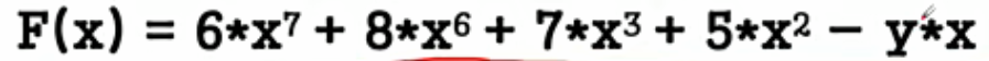 }double f(double x, double y) {return 6 * pow(x, 7) + 8 * pow(x, 6) +7 * pow(x, 3) + 5 * pow(x, 2) - y * x;