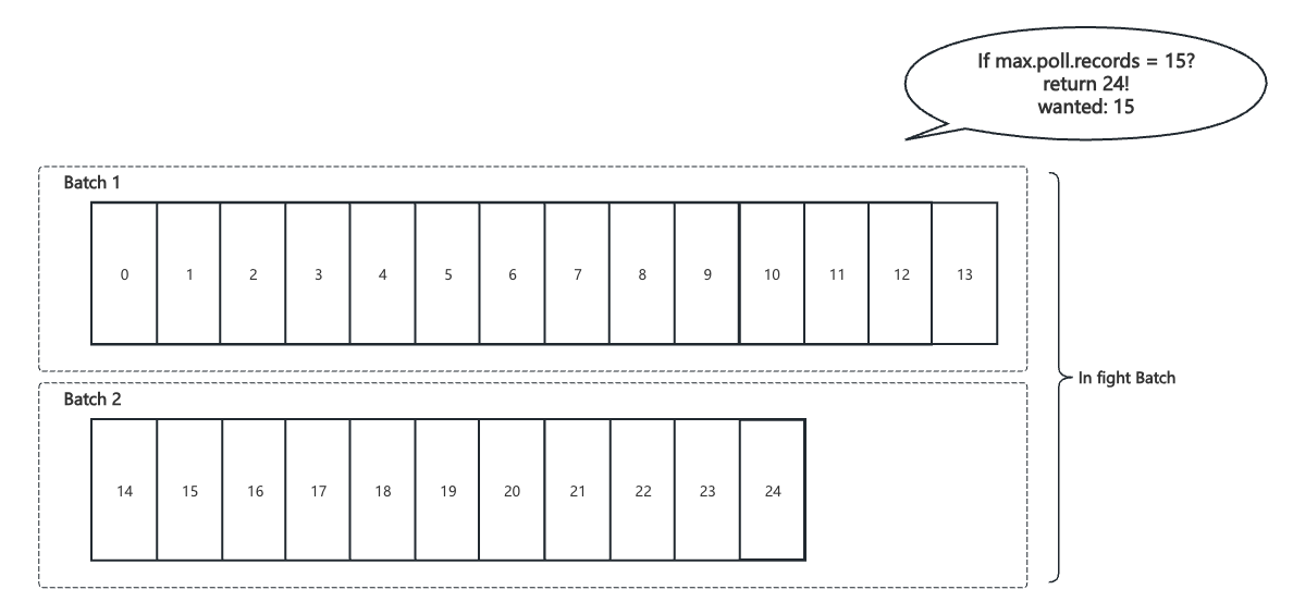 在shareFetch请求中,maxFetchRecords(max.poll.records)当前是软限制, 最终返回给客户端的消息数量需要与record batch对齐的,因此可能会超过限制。