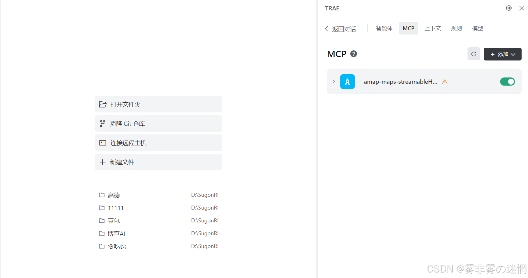 对比维度 Trae(MCP 调用模式) 传统开发模式(非 MCP 调用) 工具集成效率 通过 MCP 协议实现工具 “即插即用”,内置工具市场可直接调用高德地图 API、GitHub 等服务,零代码完成配置衔接 需手动编写接口适配代码,第三方工具集成需逐一处理协议兼容问题,平均耗时增加 3-5 倍 开发周期 支持自然语言驱动的全流程开发,复杂模块(如物流路线规划)开发时间从传统 3 天压缩至 1 天内,效率提升超 60% 需手动搭建项目框架、编写请求逻辑,仅 API 调试环节就可能耗时数小时,整体周期冗长 调试体验 具备智能上下文感知能力,可自动定位 MCP 调用参数错误,结合 AI 对话快速给出修正方案,调试效率提升 30 倍 需手动追踪接口请求链路,依赖日志排查问题,多接口协同报错时定位难度大 兼容性保障 自动识别 MCP 接口规范,智能补全密钥配置与跨域处理代码,提前预判并发调用风险并推荐缓存策略。 易出现跨平台、跨版本兼容性问题,需额外编写适配代码,后期维护成本高。 团队协作 支持自定义 MCP 工具链配置与规则同步,生成代码结构统一、注释完整,便于团队复用与后续维护 代码风格依赖个人习惯,接口调用逻辑分散,协作时需额外花费时间梳理对接规则