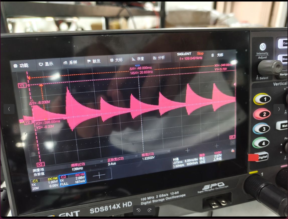 最后排查了很久,将线圈的电容跟换一遍,发现波形有点效果,应该不要畏惧跟换元器件的麻烦,还得注意输出线圈的焊接处问题