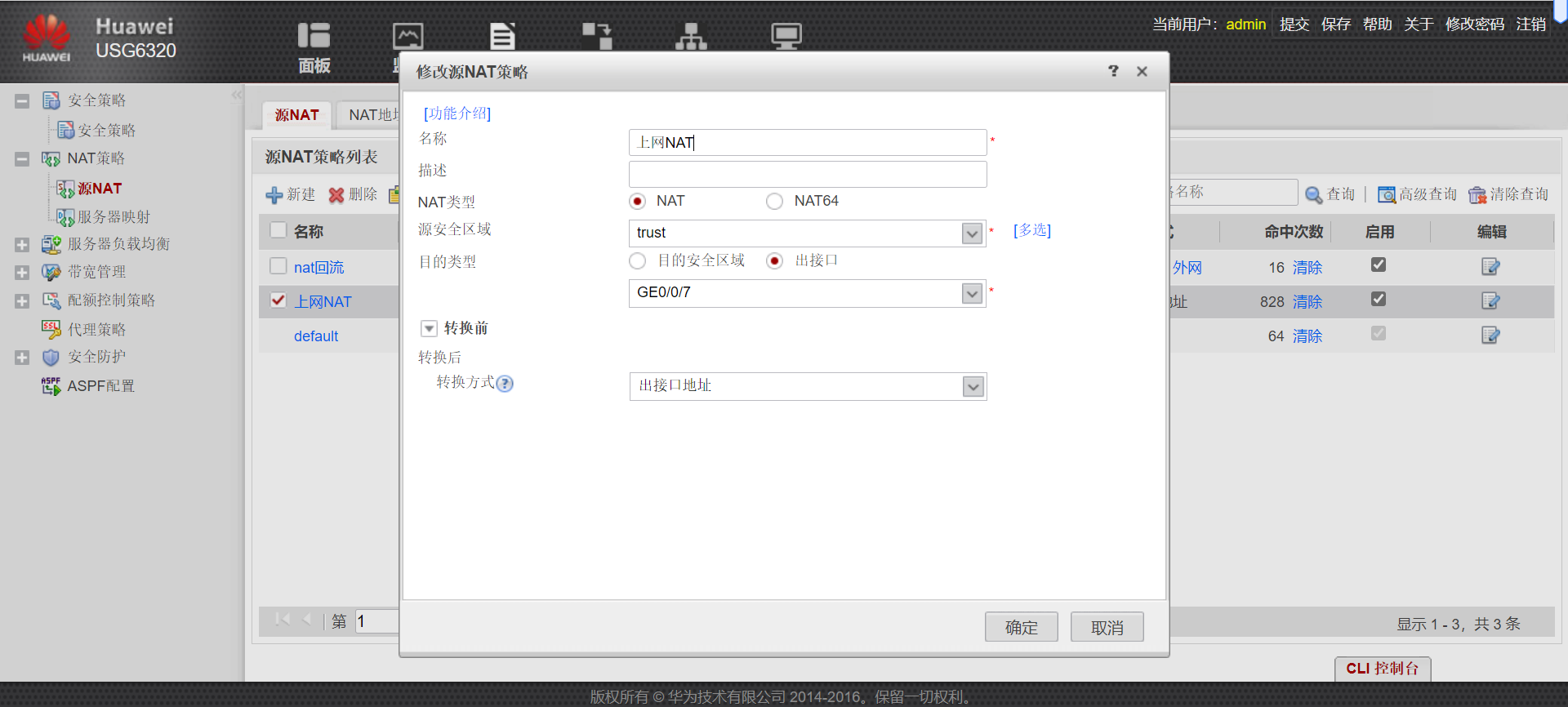 四、NAT策略配置