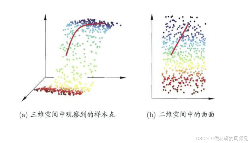 - 低维嵌入:降维的核心思路,保持样本在低维空间的结构与高维空间一致;