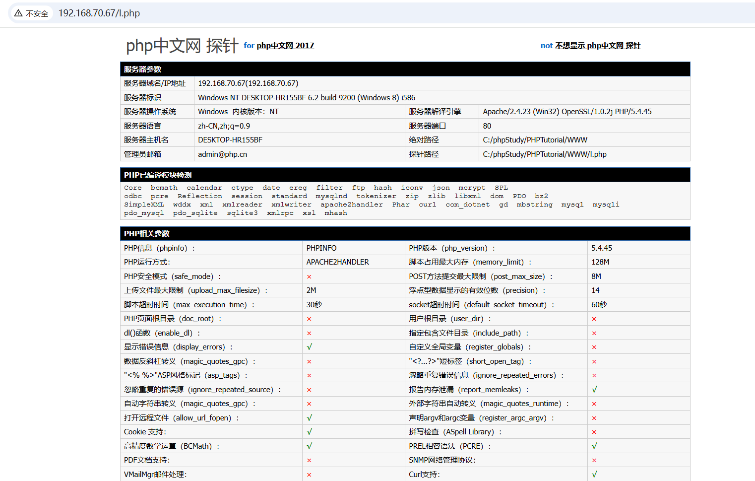 大部分的官方网站都有防护(意思是没有漏洞),我们要怎么去创造漏洞是一个问题,所以选择什么搭建平台是最重要的。我一般会选择使用phpstudy进行搭建网站。因为phpstudy会自带一个phpmyadmin和phpinfo和php探针,然后phpmyadmin是可以写入webshell的漏洞。