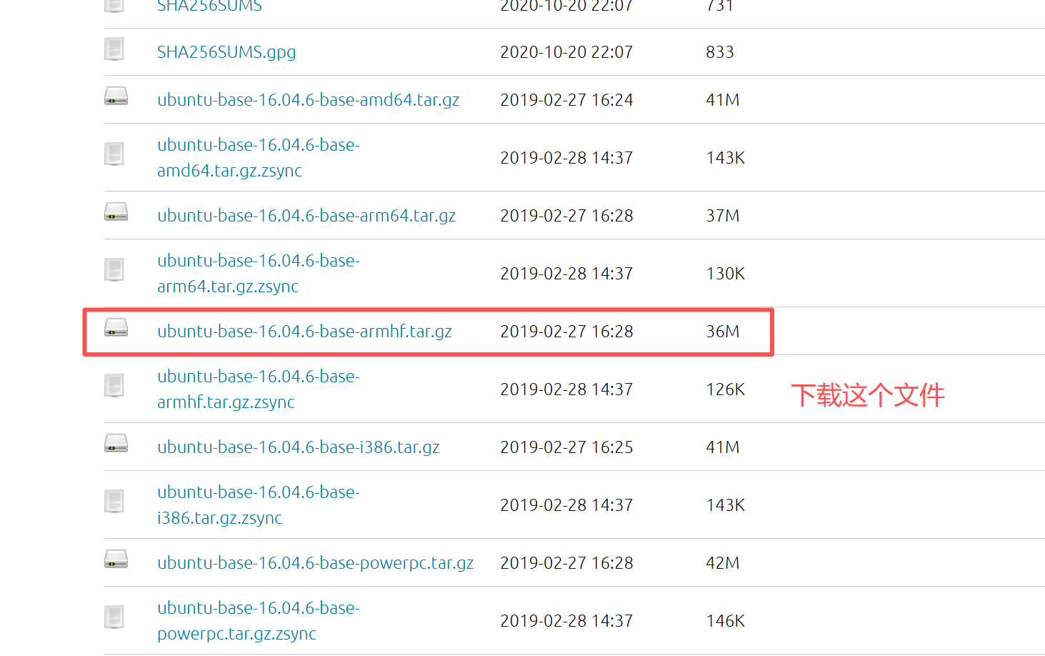 注意:Ubuntu针对不同的CPU架构提供相应的ubuntu base根文件系统,有amd64(64位X86)、armhf、i386(32位X86)、powerpc、ppc64el等系统的。ZYNQ的PS端是两个Cortex-A9核的CPU,并且有硬件浮点运算单元,因此选择armhf版本。