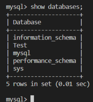 mysql> show databases; |