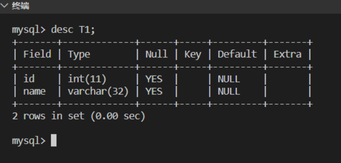 mysql> desc T1; |