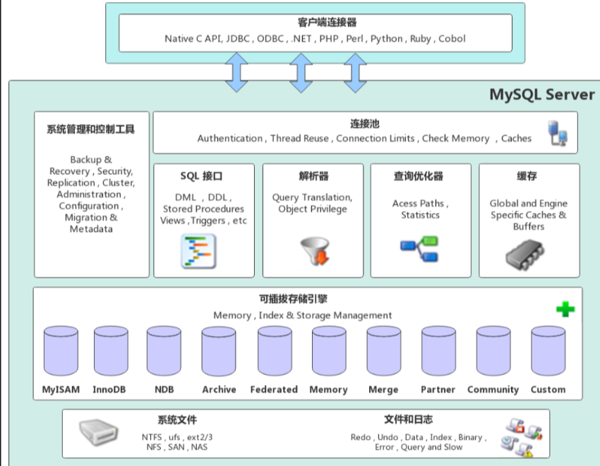 MySQL是一个可移植的数据库,可在几乎所有操作系统上运行,但主要在Linux类似的服务器后端中运行。得益于优秀的分层设计,MySQL能保证在各个平台运行时,物理体系结构的一致性。大体可分为三层: