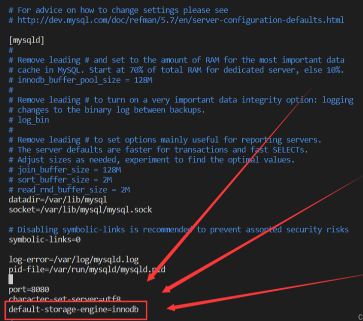 若觉得不方便查看,可输入“mysql> show engines \G;”表示格式化显示。当前MySQL支持的存储引擎有很多,可查看创建数据库时默认使用的存储引擎,查看配置文件“vim /etc/my.cnf”即可。这其实就是当时配置my.cnf时指定的存储引擎InnoDB,也是MySQL中常用的存储引擎之一。也可在表创建成功后,查看使用了哪个引擎,命令如下: