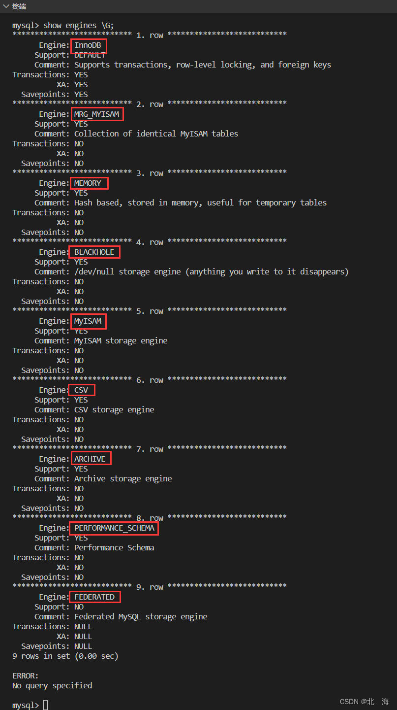 mysql> show engines; |