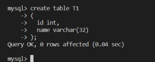mysql> create table T1 |