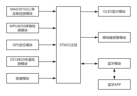 1.传感器检测:检测体温、心率、血氧等健康相关数据