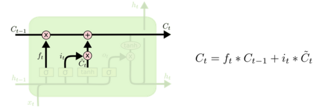 更新当前细胞状态,保存历史数据状态,保证长序列下保存良好