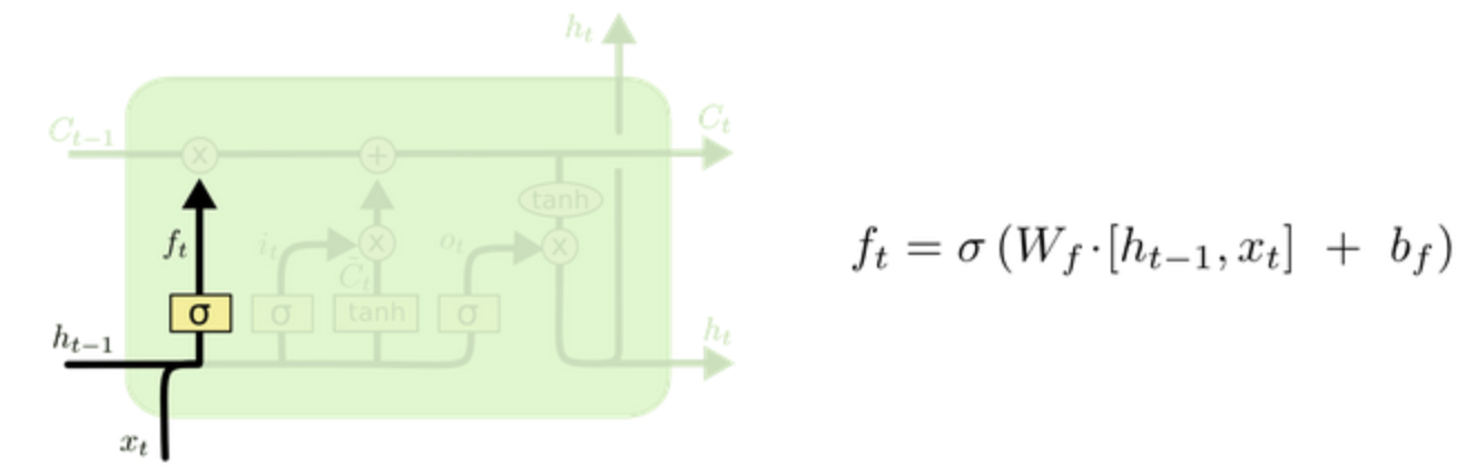 作用在上一个时间步的细胞状态之上,表示对上一个时间步信息遗忘多少。