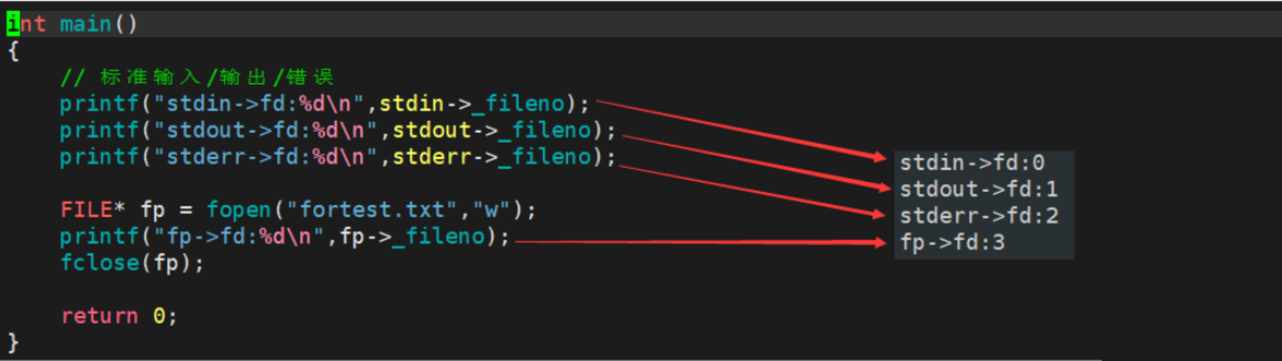 - 通过对下面代码的运行我们发现在我们没有打打开标准输入/输出/错误的情况下,可以对这几个文件进行操作,并且文件描述符与上述的一 一对应,再打开一个文件并输出它的文件描述符也确实是从3开始的。