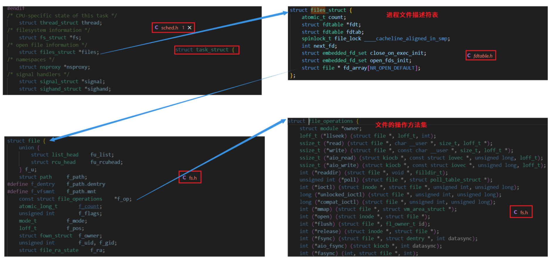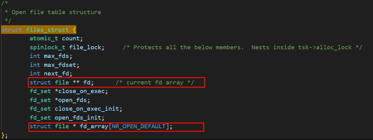 - Linux下用struct files_struct来描述一个进程打开的文件信息:
