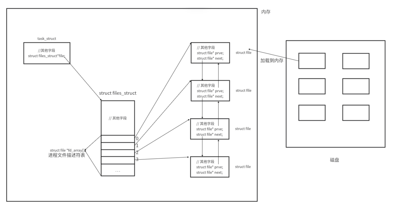 struct file {// 文件属性// ...// 指针struct file* next; }
