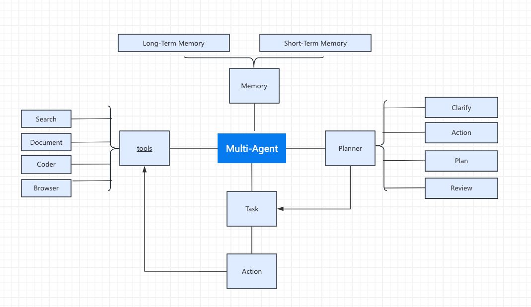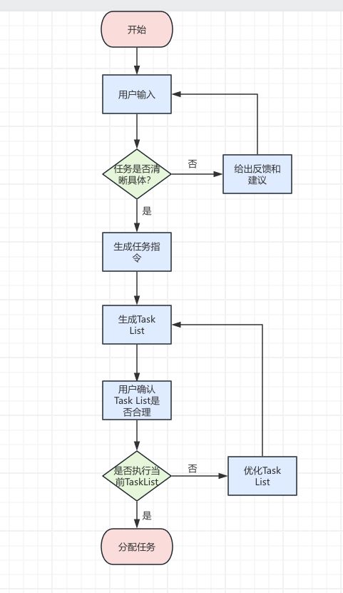 任务的澄清与规划涉及到规划的任务是不是符合用户的预期、最终目标是不是能顺利完成,因此这一个过程需要用户的参与,Agent通过分析用户的意图,给出针对的反馈和建议,明确用户的意图,围绕用户的意图给出合理的任务规划,生成待执行的任务列表,并与用户确认。
