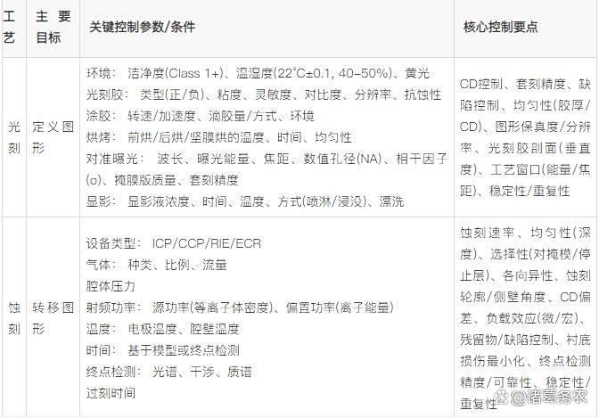 2. 光刻与蚀刻关键控制参数对比表